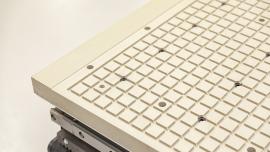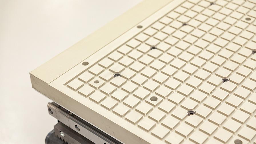 3 osý a přesný pohyb hlavy funguje nad rozsáhlým a vícezónovým podtlakovým stolem, který umožňuje zpracování plochého materiálu s maximálními rozměry 3000 x 1500 mm. Stůl má šest zón s 216 jednotlivými podtlakovými body k zajištění řady variant uspořádání. Vřeteno je vybaveno spolehlivým a vysoce účinným systémem odsávání prachu k udržení čistého pracovního prostředí.