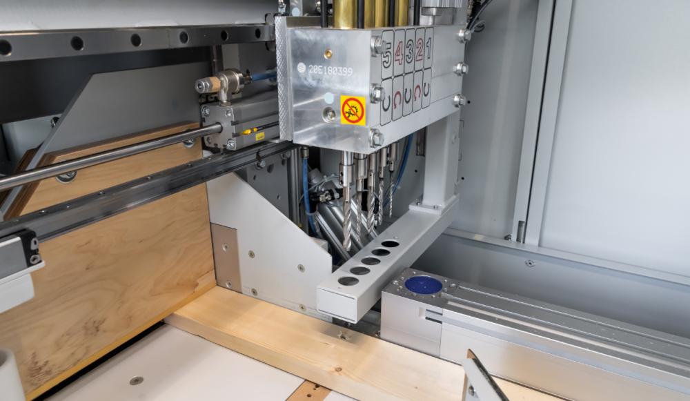 Vŕtacia jednotka je v základnom korpuse stroja umiestnená pred pílovou jednotkou. Jednotka je navrhnutá s vysokokvalitnými komponentmi na presné polohovanie v šírke obrobku (os Y) a vo výške obrobku (os Z).